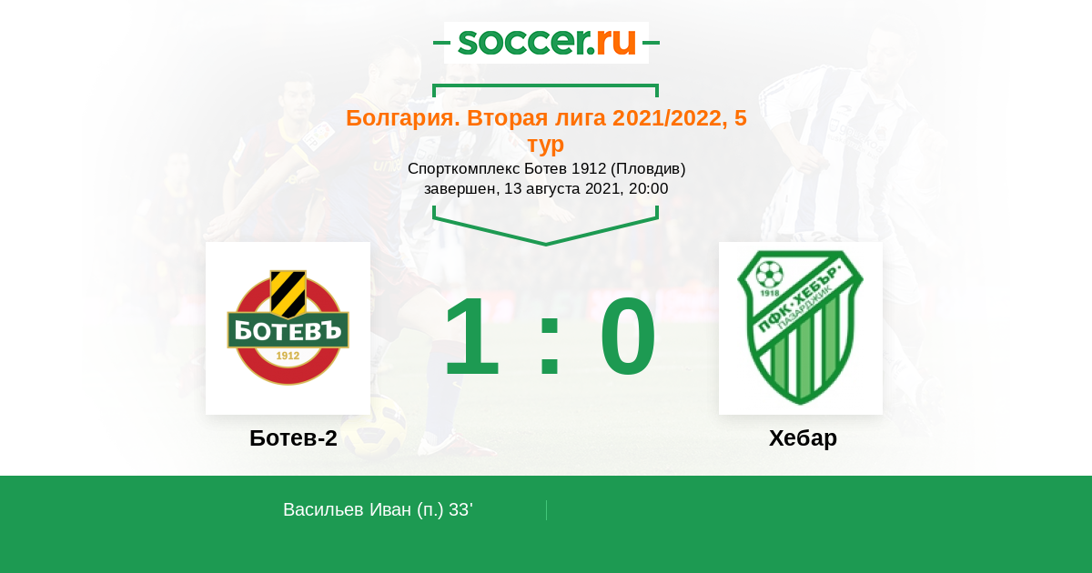Протокол матча Ботев-2 против Хебар