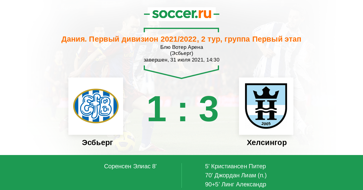 Протокол матча Эсбьерг против Хелсингор