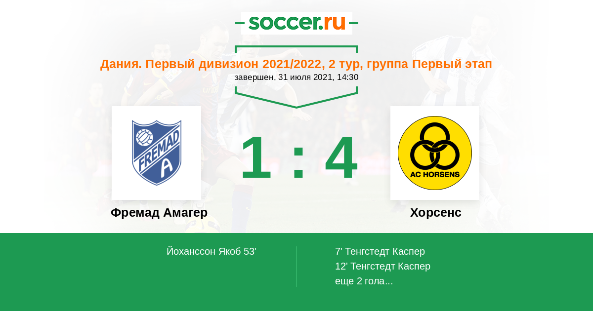 Протокол матча Фремад Амагер против Хорсенс