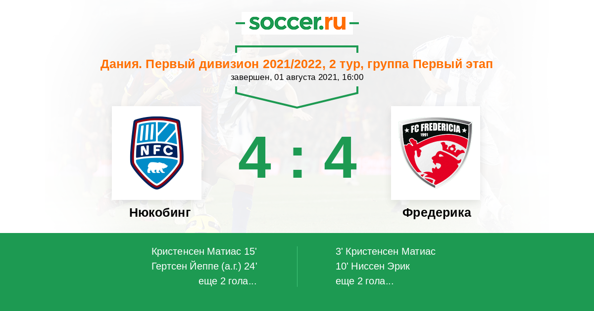 Протокол матча Нюкобинг против Фредерика