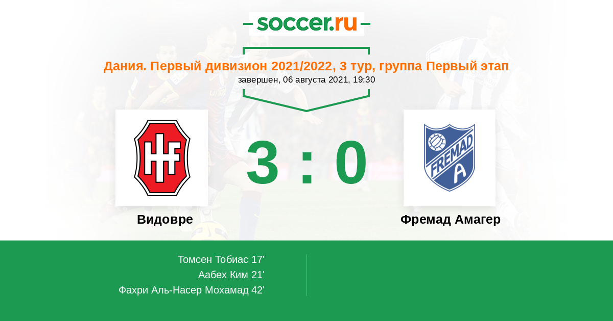 Протокол матча Видовре против Фремад Амагер