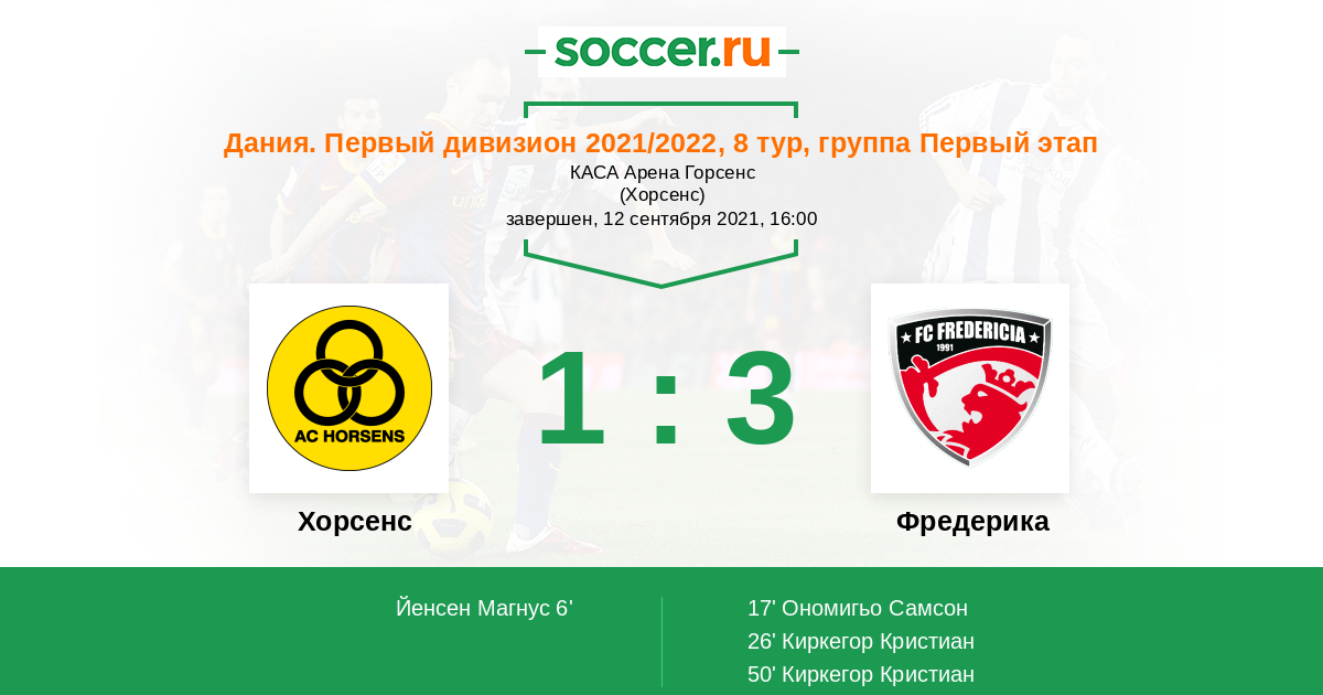 6' (1:0) Йенсен Магнус (3) (Янус Драчман (8))