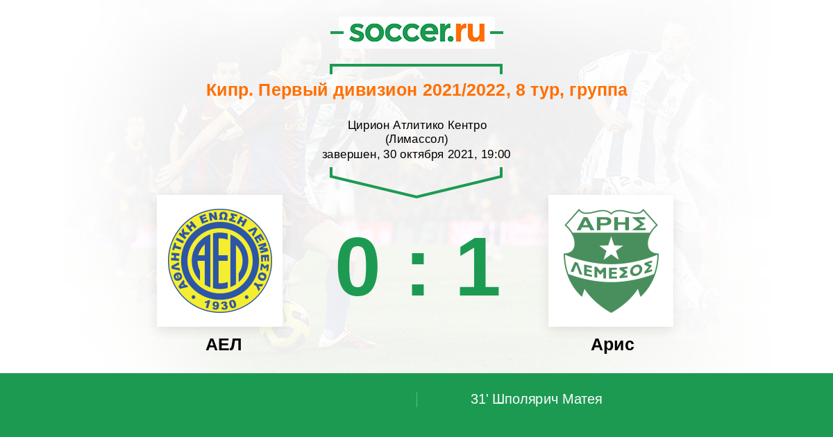 Протокол матча АЕЛ против Арис