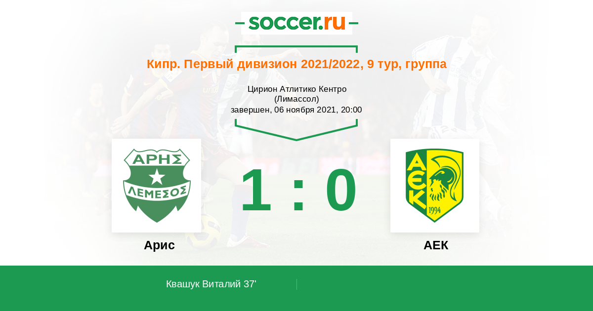Протокол матча Арис против АЕК