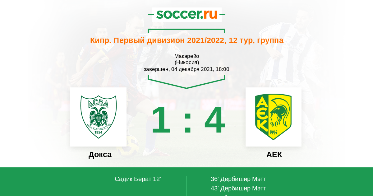 36' (1:1) Дербишир Мэтт (27) (Гарсия Анхель (14))