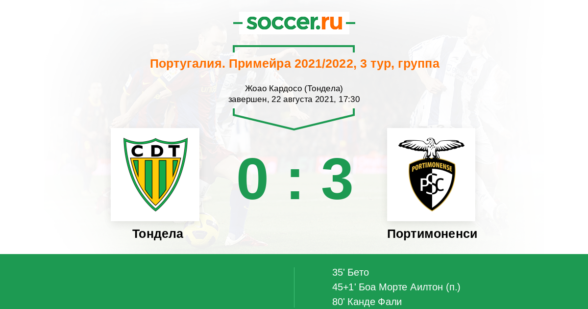 Протокол матча Тондела против Портимоненси