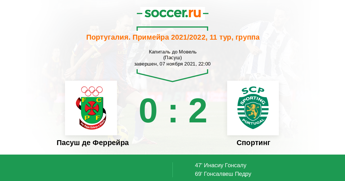 Пасуш немного пропускает в этом сезоне а Спортинг мало забивает. 4 из последних 5 матчей он выиграл со счетом 1:0. Так что вполне вероятно что и в этом матче повторится такой же счет.