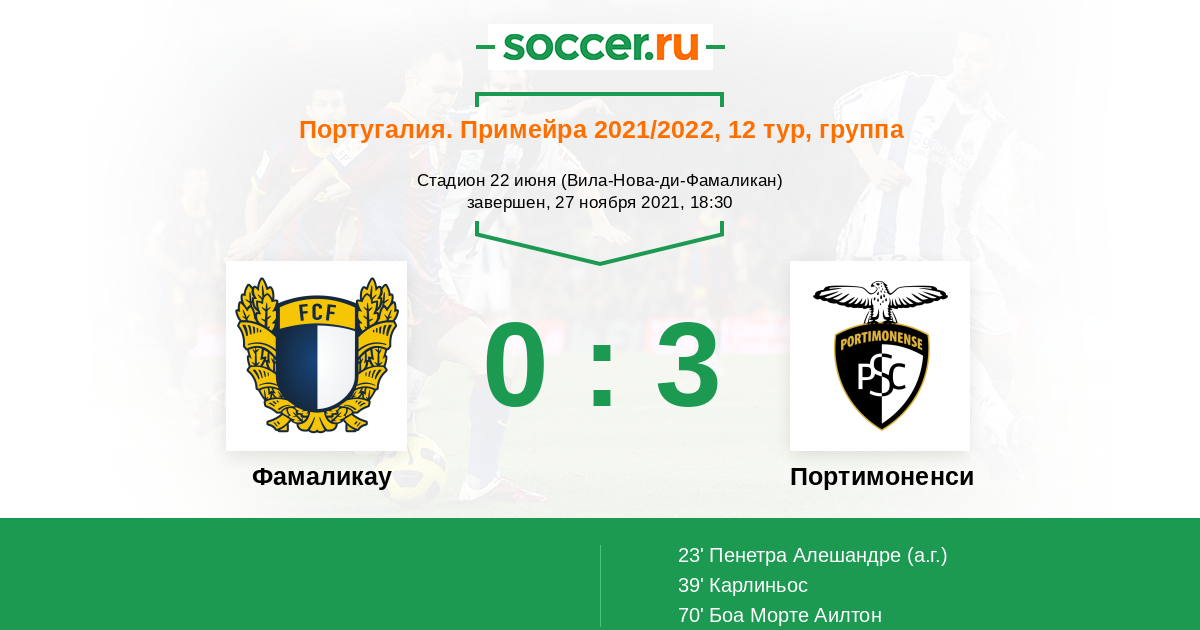 Протокол матча Фамаликау против Портимоненси