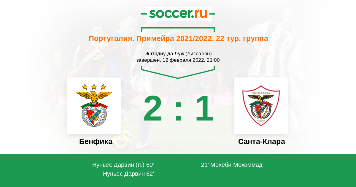 Протокол матча Бенфика против Санта-Клара