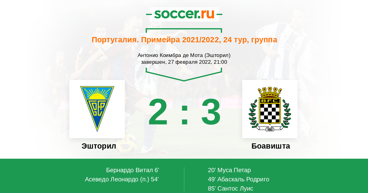 Протокол матча Эшторил против Боавишта