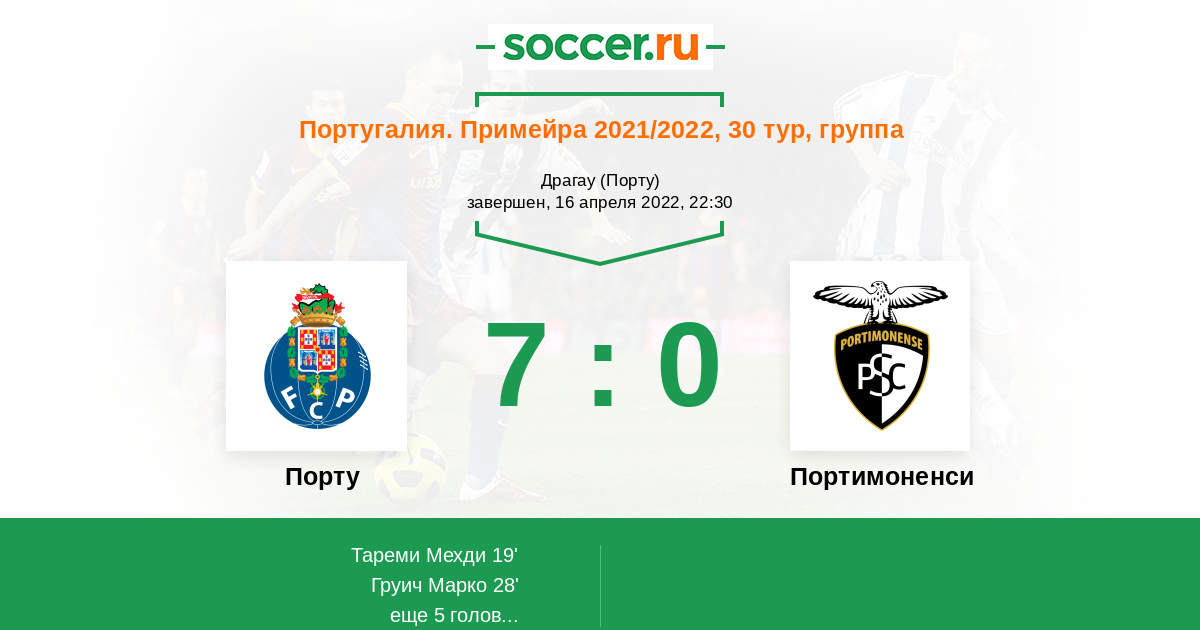 Протокол матча Порту против Портимоненси
