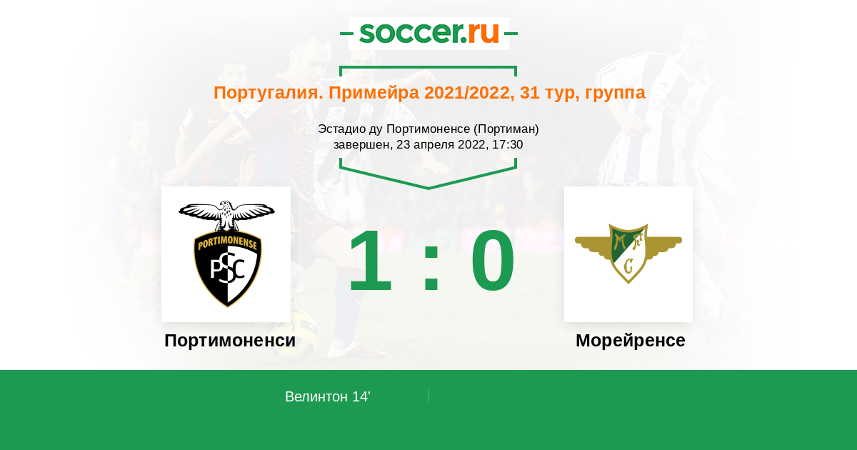 Протокол матча Портимоненси против Морейренcе