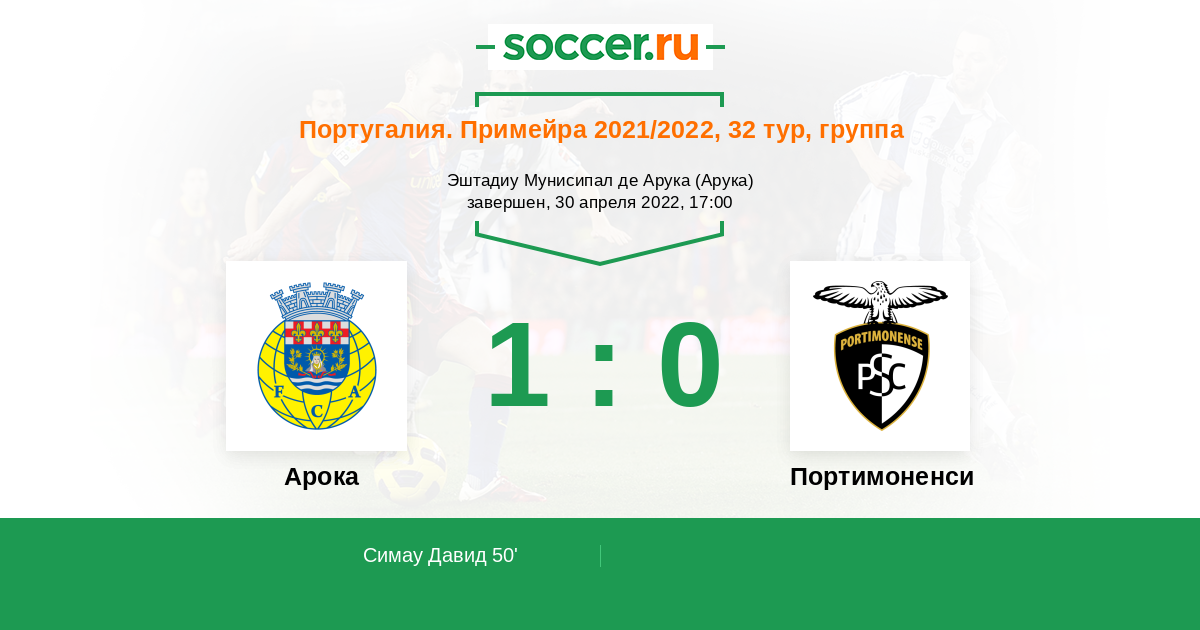 Протокол матча Арока против Портимоненси