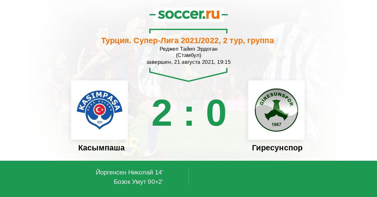 Протокол матча Касымпаша против Гиресунспор