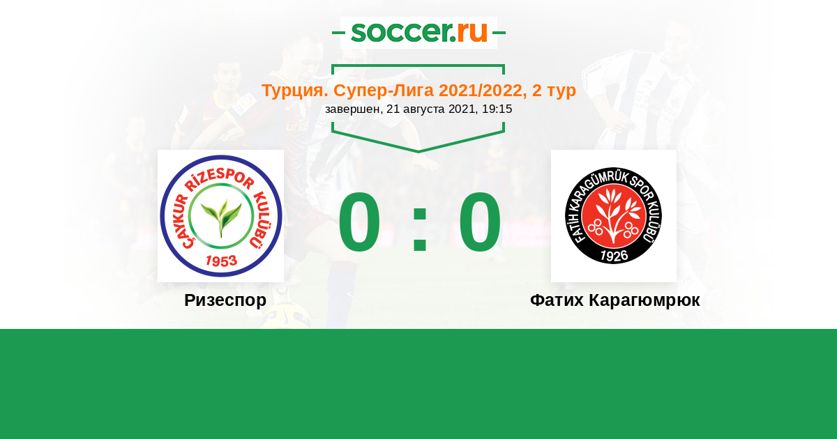 Протокол матча Ризеспор против Фатих Карагюмрюк