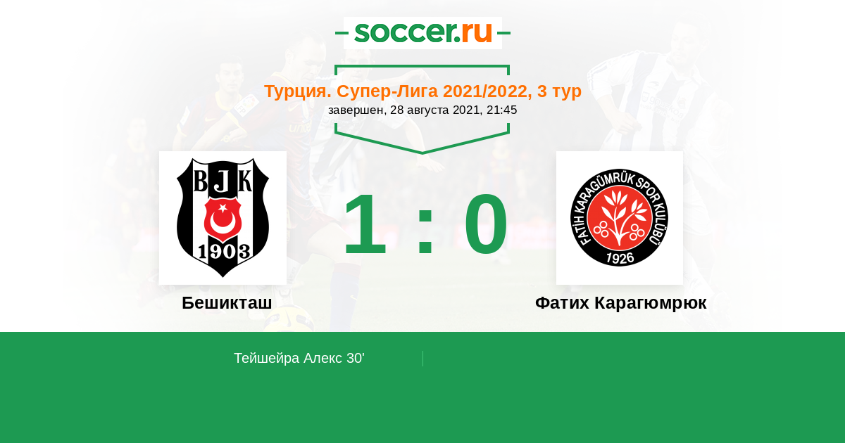 Протокол матча Бешикташ против Фатих Карагюмрюк