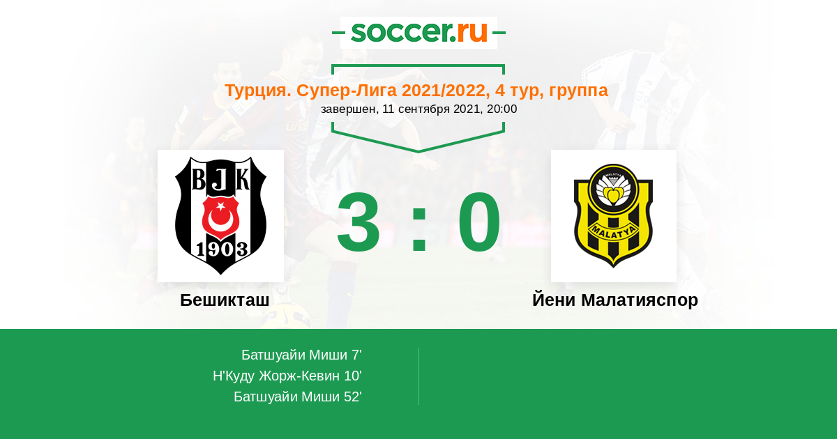 Протокол матча Бешикташ против Йени Малатияспор