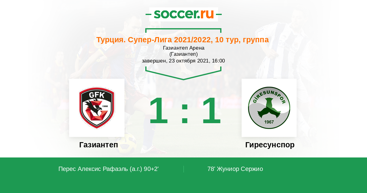 90+2' (1:1) Автогол Перес Алексис Рафаэль (25)