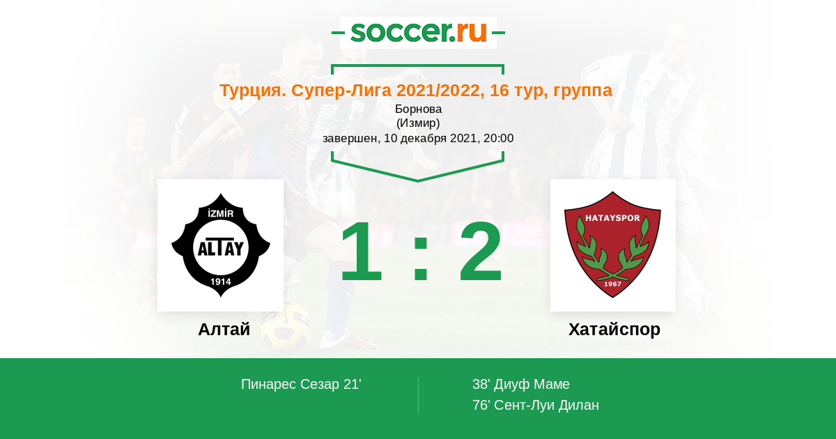 Протокол матча Алтай против Хатайспор