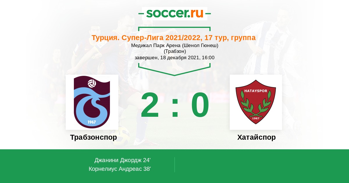 Протокол матча Трабзонспор против Хатайспор