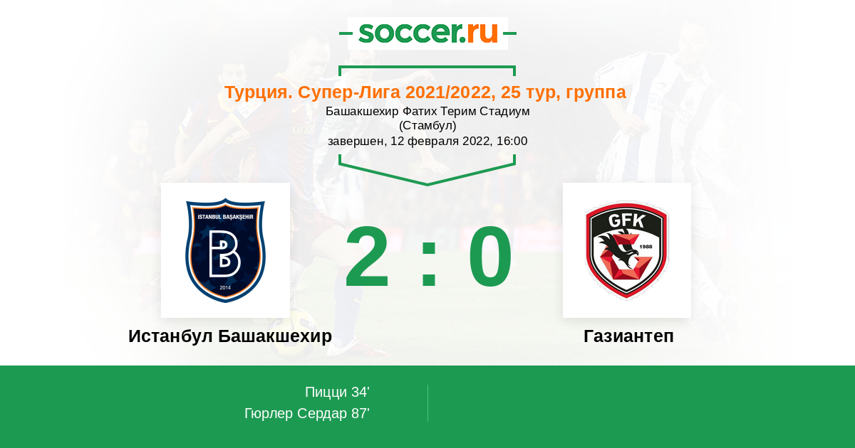 Протокол матча Истанбул Башакшехир против Газиантеп