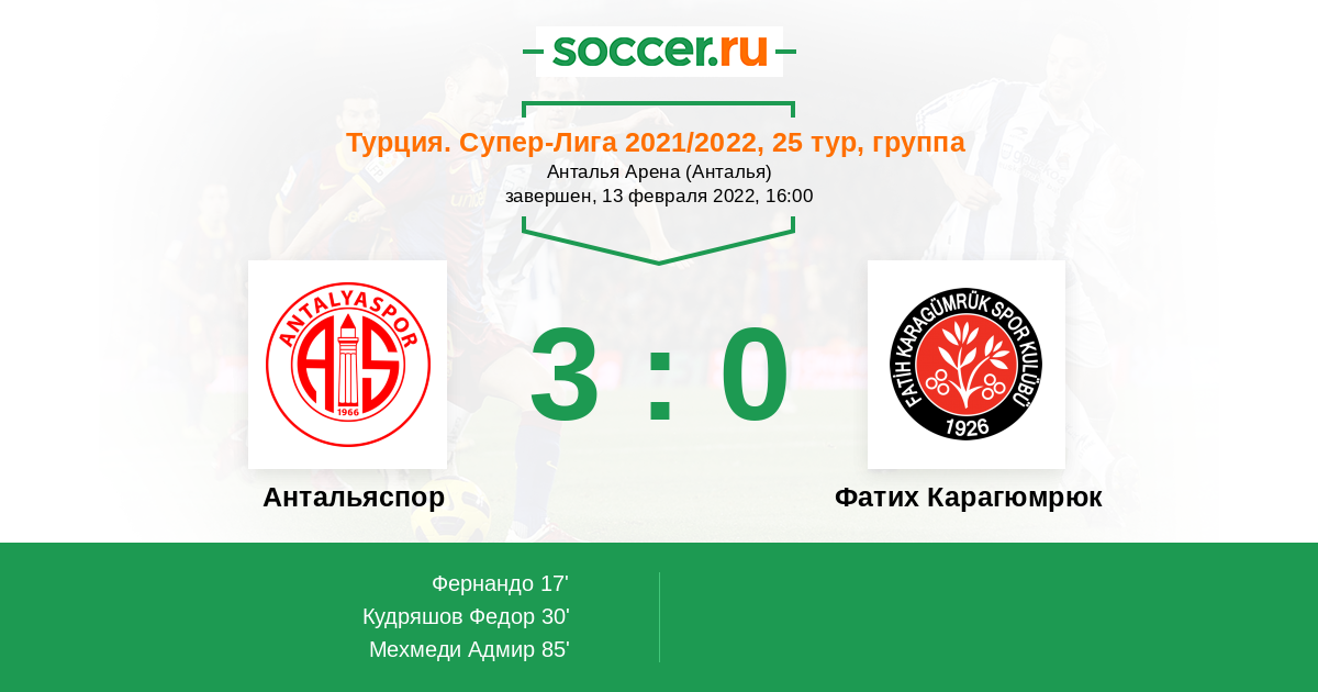 Протокол матча Антальяспор против Фатих Карагюмрюк