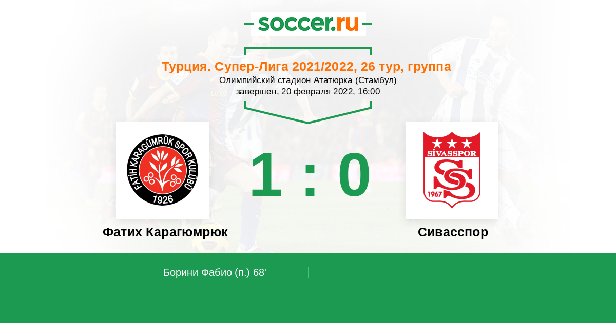 Протокол матча Фатих Карагюмрюк против Сивасспор