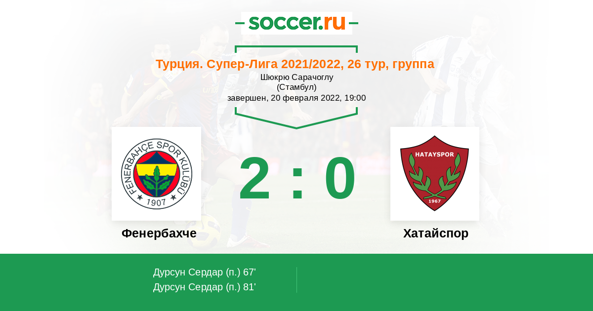 Протокол матча Фенербахче против Хатайспор