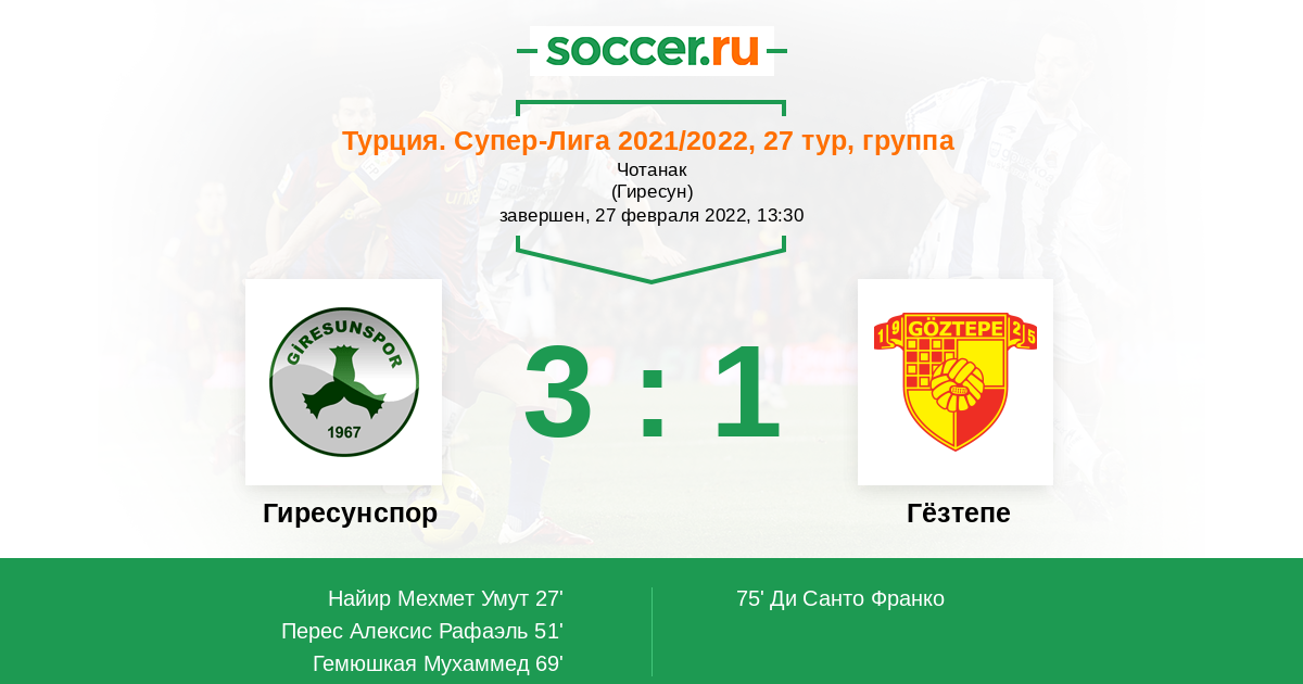 Протокол матча Гиресунспор против Гёзтепе