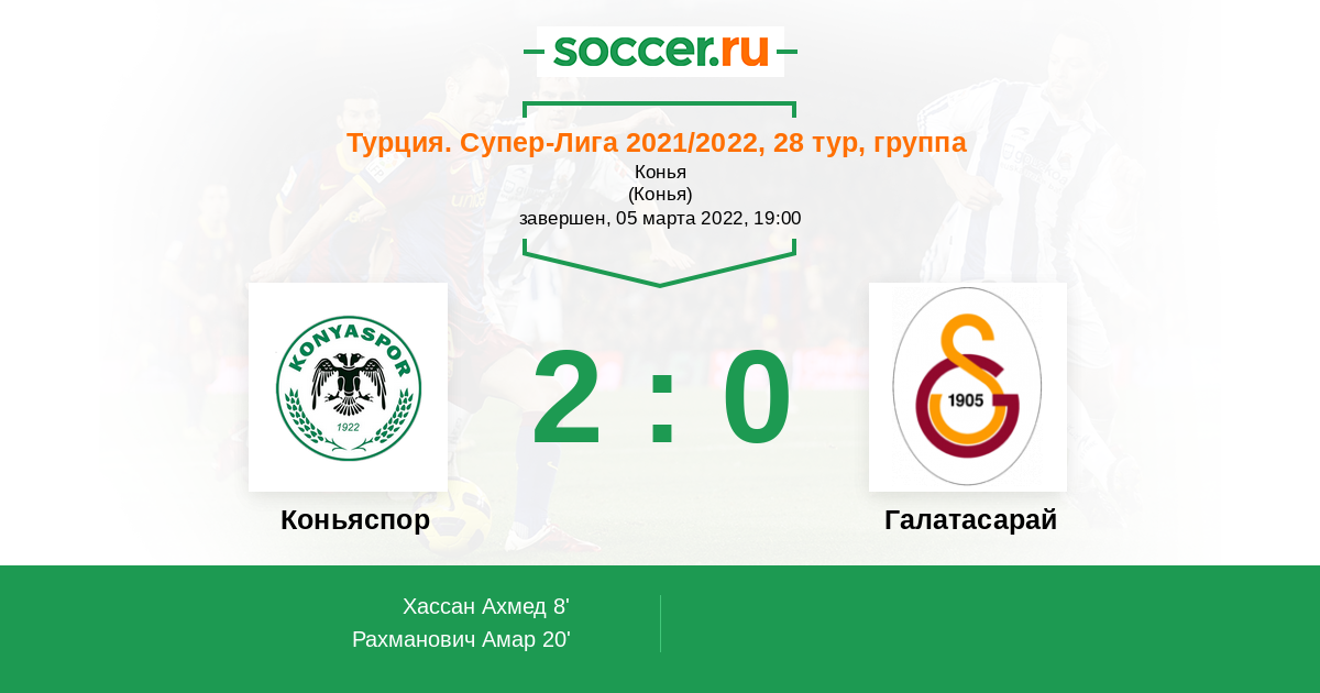 Протокол матча Коньяспор против Галатасарай