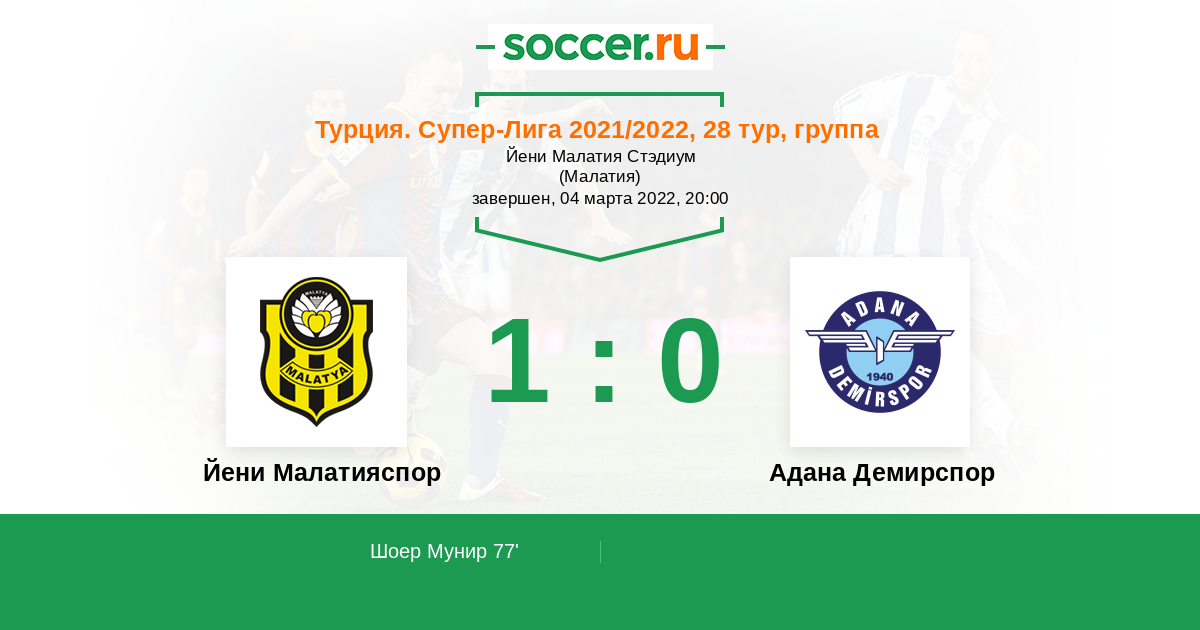 Протокол матча Йени Малатияспор против Адана Демирспор