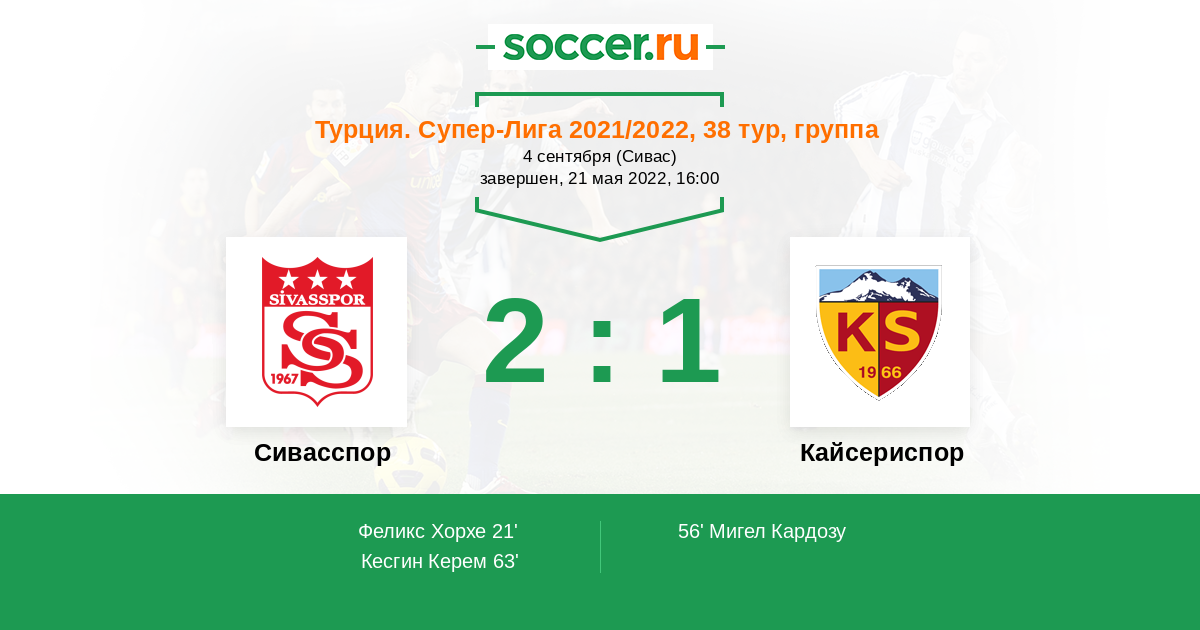 Протокол матча Сивасспор против Кайсериспор
