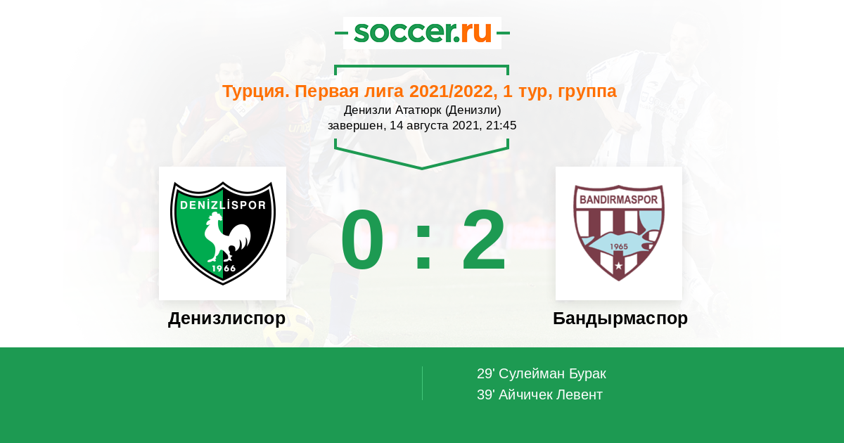 Протокол матча Денизлиспор против Бандырмаспор