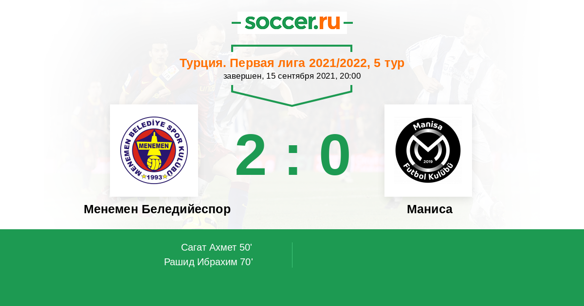 Протокол матча Менемен Беледийеспор против Маниса
