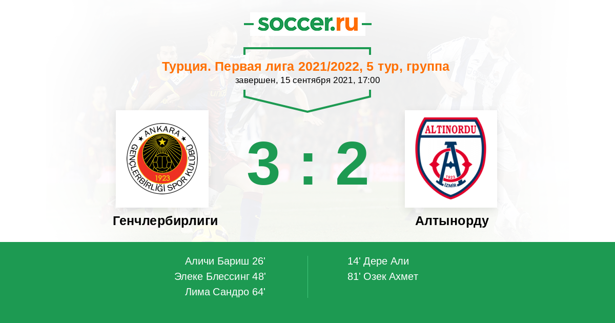 Протокол матча Генчлербирлиги против Алтынорду