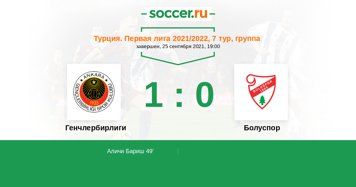 Протокол матча Генчлербирлиги против Болуспор