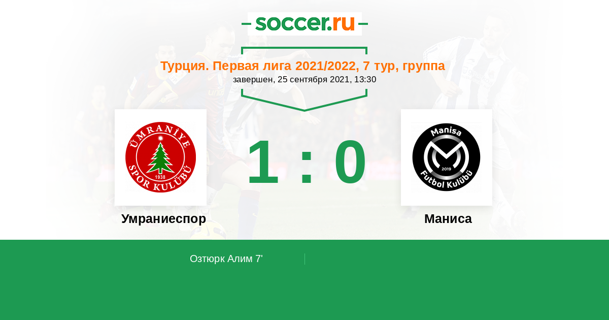Протокол матча Умраниеспор против Маниса