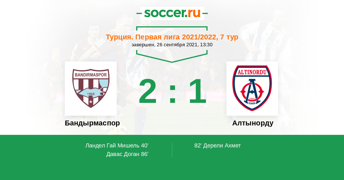 Протокол матча Бандырмаспор против Алтынорду