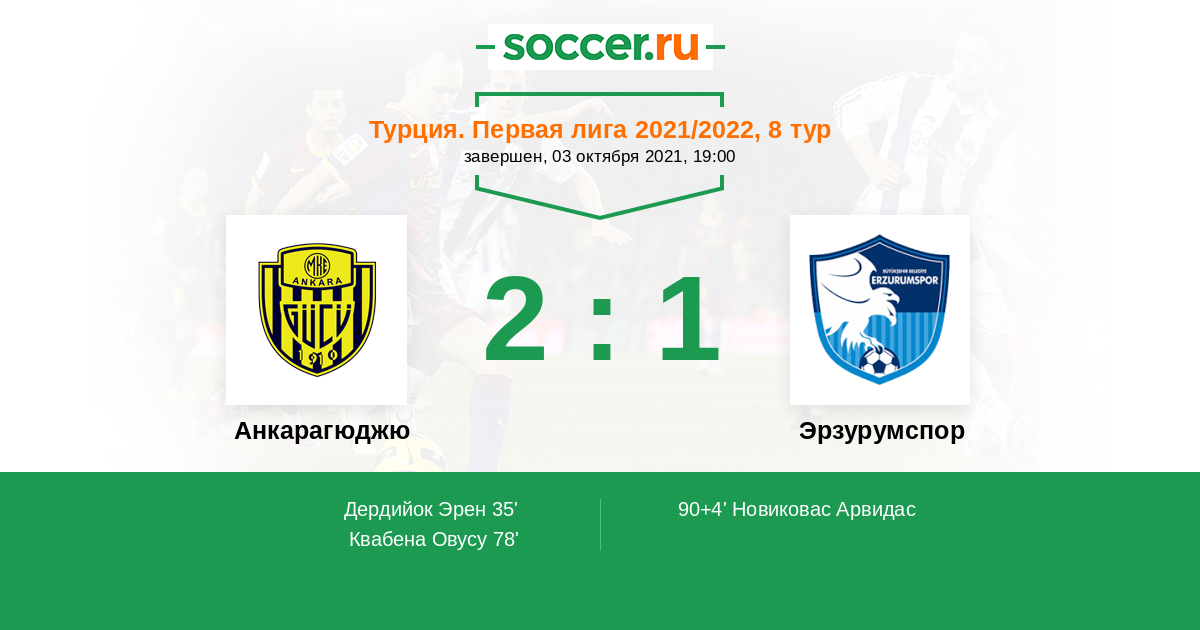 Протокол матча Анкарагюджю против Эрзурумспор