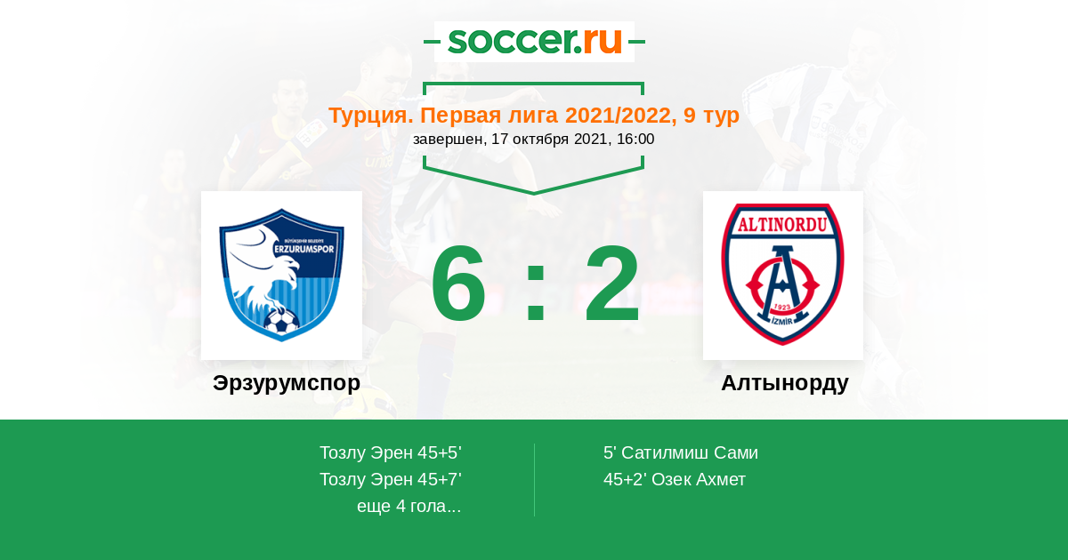 Протокол матча Эрзурумспор против Алтынорду