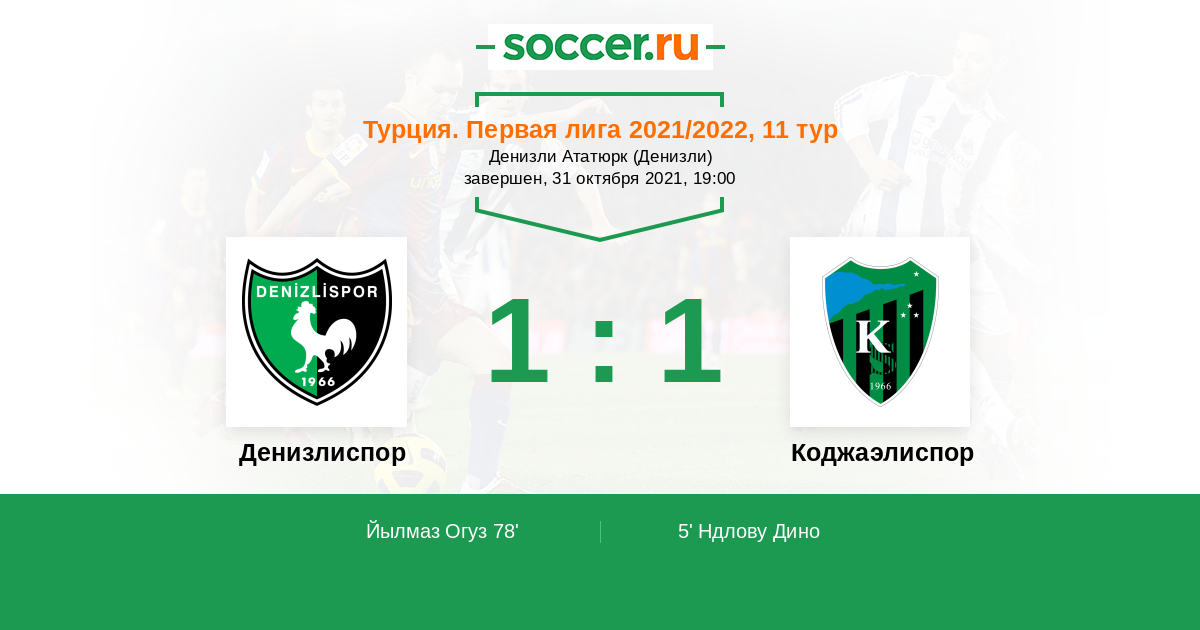 Протокол матча Денизлиспор против Коджаэлиспор