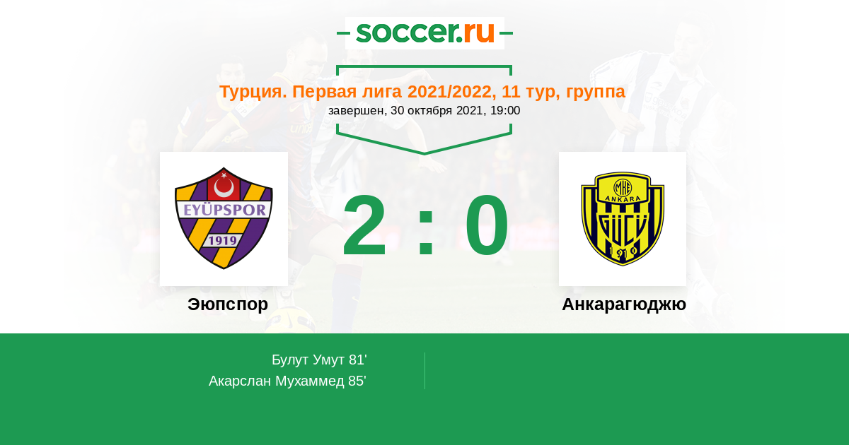 Протокол матча Эюпспор против Анкарагюджю