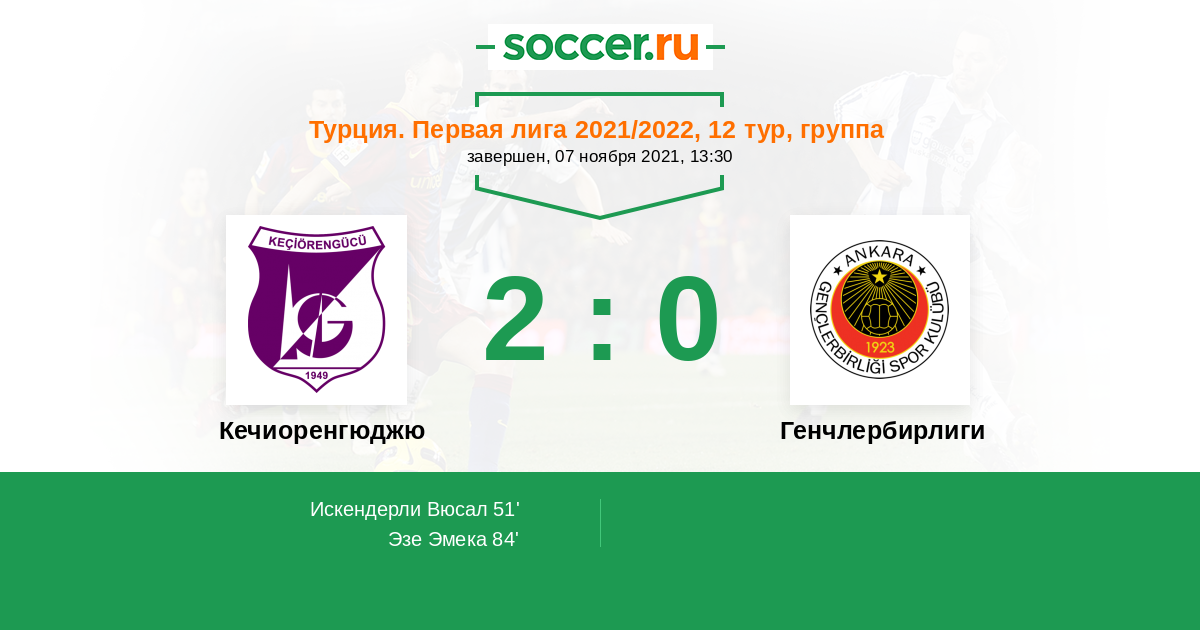 Протокол матча Кечиоренгюджю против Генчлербирлиги