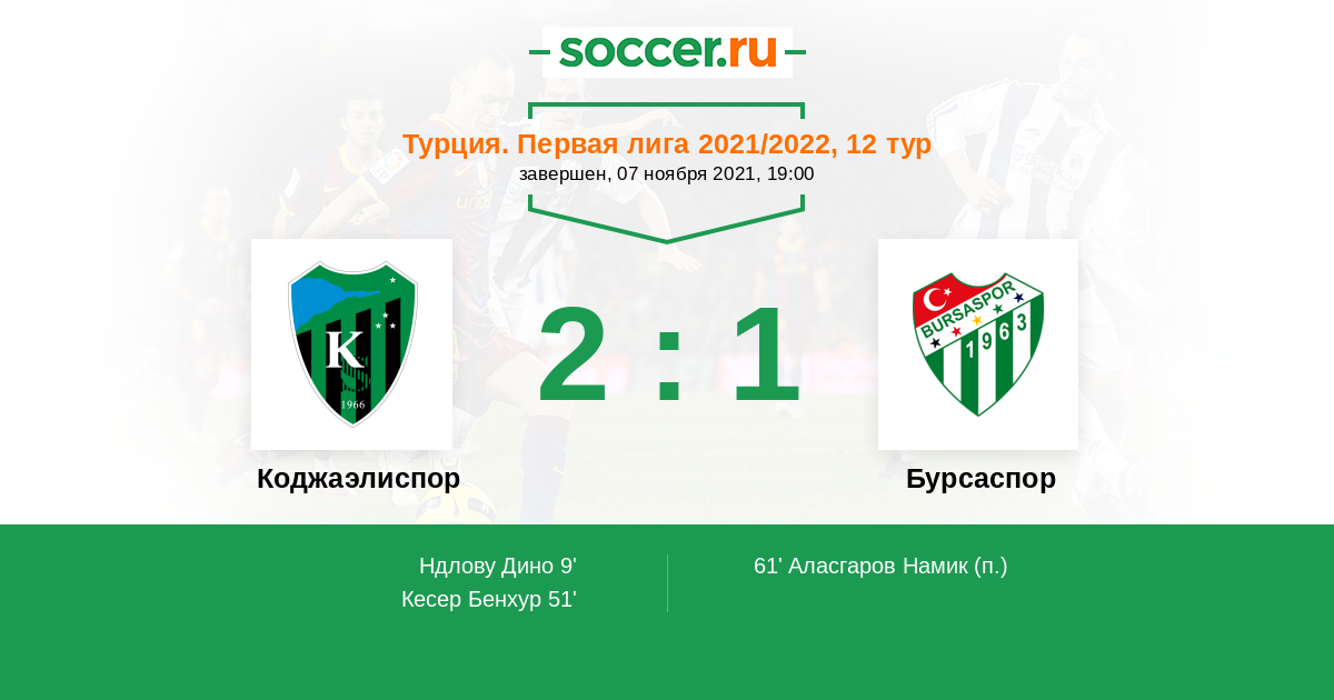 Протокол матча Коджаэлиспор против Бурсаспор