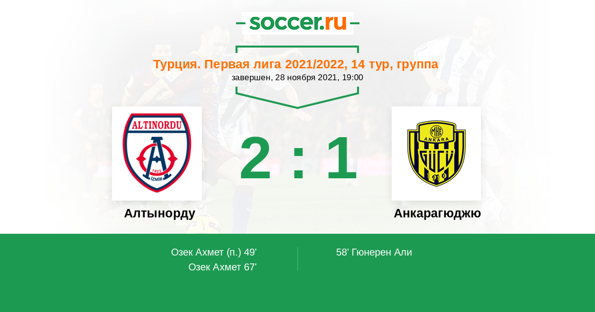 Протокол матча Алтынорду против Анкарагюджю