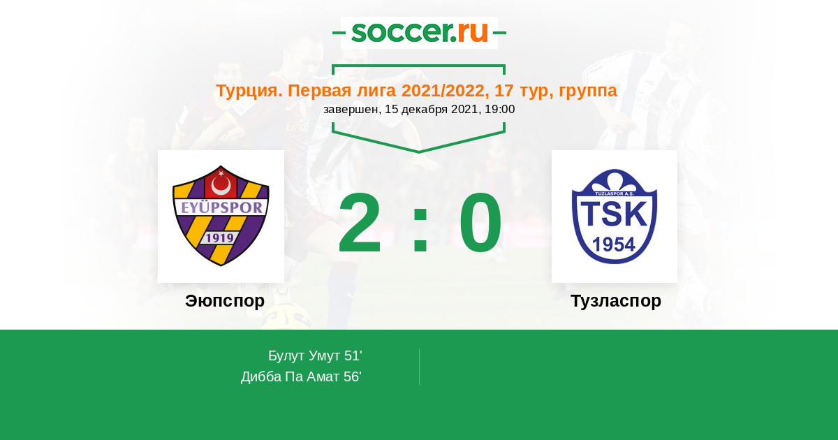 56' (2:0) Дибба Па Амат (11) (Узун Бюлент (53))