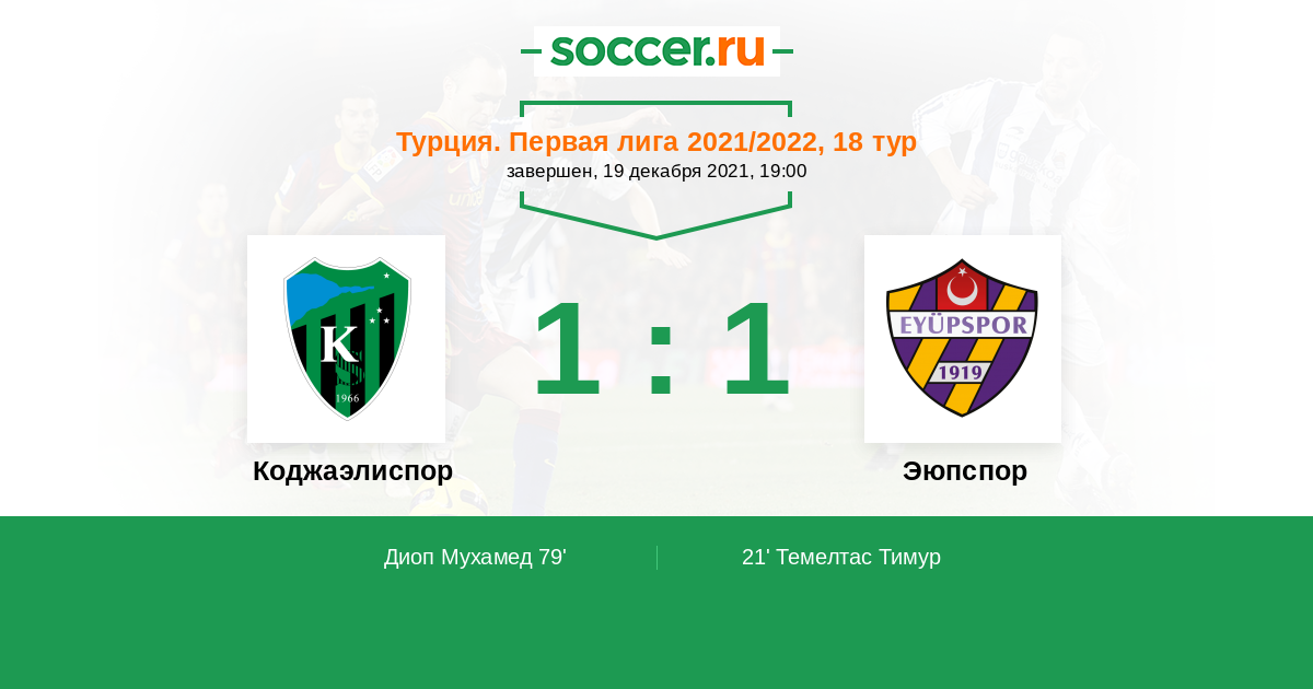 Протокол матча Коджаэлиспор против Эюпспор