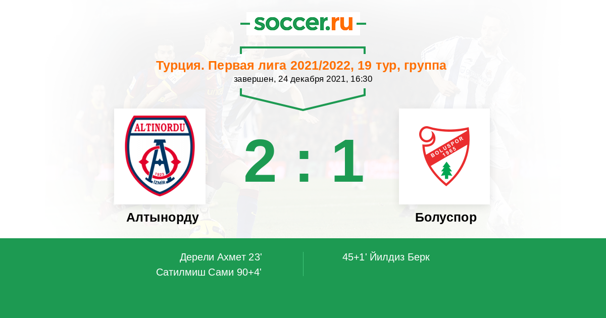 90+4' (2:1) Сатилмиш Сами (80) (Озек Ахмет (9))