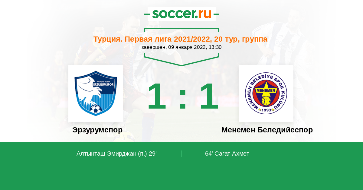 Протокол матча Эрзурумспор против Менемен Беледийеспор