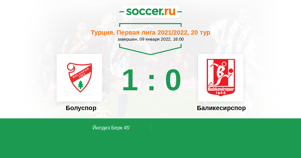 Протокол матча Болуспор против Баликесирспор